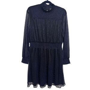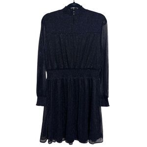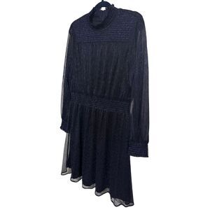 SAM EDELMAN Metallic Long Sleeve Cocktail Dress Midnight Blue NWT 14