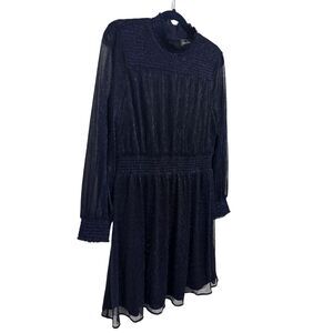 SAM EDELMAN Metallic Long Sleeve Cocktail Dress Midnight Blue Holiday NWT 14 XL