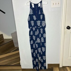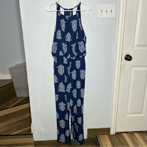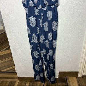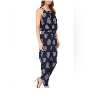 SAM EDELMAN Navy Blue Paisley Print V-Key Hole Women’s Sleeveless Jumpsuit Sz M