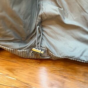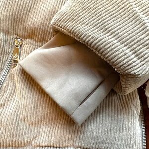 Stay cozy and chic with this stunning Sam Edelman puffer jacket in size XL. Designed with soft quilted corduroy fabric in a neutral grey hue, this jacket combines warmth, style, and comfort effortlessly.