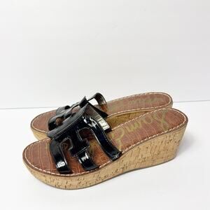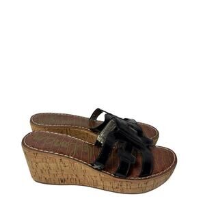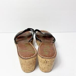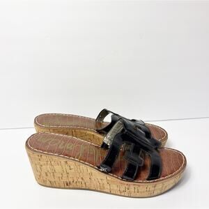 SAM EDELMAN REGIS CORK WEDGE WOMEN PLATFORM SLIDE SANDALS BLACK SIZE 9