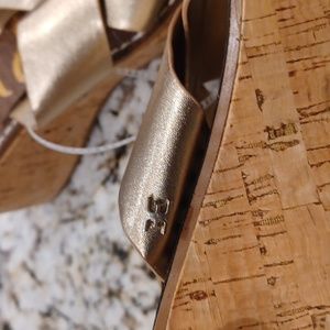 This shoe features slip-on styling for easy wear, a synthetic lining for moisture-wicking properties, a rubber outsole for slip resistance, a cork wedge heel for stability and a touch of elegance, and an approximate 2.75" wedge height for moderate lift and comfort.