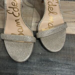 SAM EDELMAN SHOES 9.5 SILVER SPARKLE HEELS ANKLE STRAP ANTHROPOLOGIE BHLDN