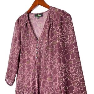 SAM EDELMAN Sheer Button Front Dress Size Small Size Small in Burgundy Print