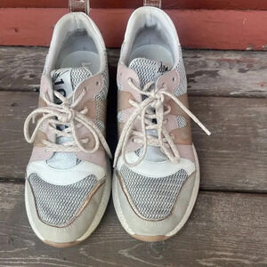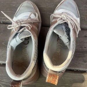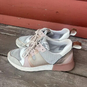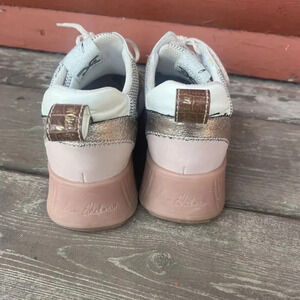 SAM EDELMAN White Pink Lace Up Fabric Leather Darsie Gold Sneakers Shoes Size 7