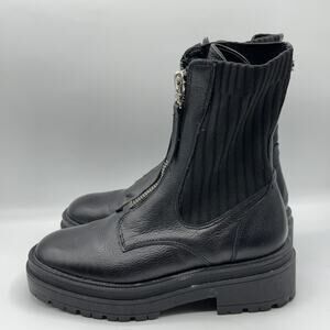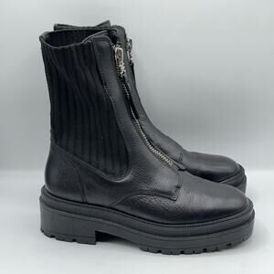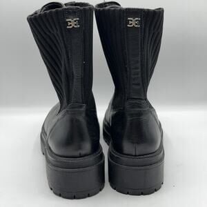 SAM EDELMAN Winniford Zip Combat Boots Leather Black Lug Sole