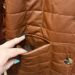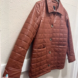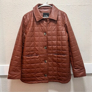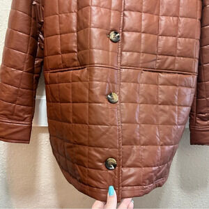 SAM EDELMAN Womens Box Quilted Faux Leather Shacket Jacket Size M Brown
