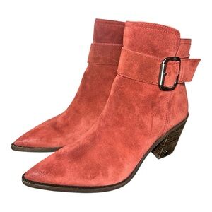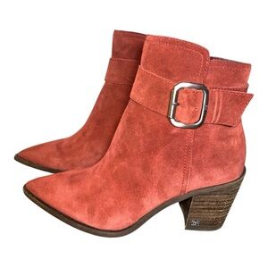 SAM EDELMAN Women's Leonia Block Heel Booties In Spiced Mahogany Suede Size 7.5