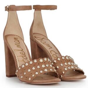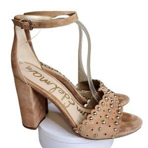 SAM EDELMAN- Women’s Yaria Studded Suede Leather Block Heel Ankle Strap, Size 10