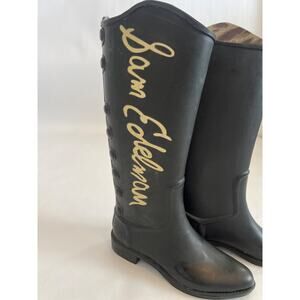 SAM EDELMAN XENIA WOMENS TALL RUBBER RAIN BOOTS WELLIES BLACK TAN SIZE 7M