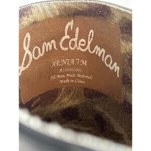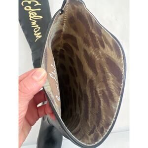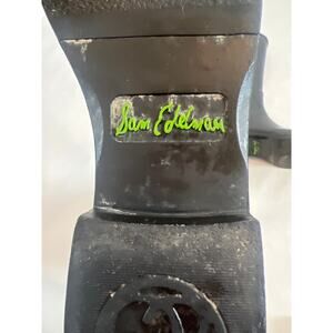 BLACK WITH TAN SAM EDELMAN PROMINENTLY ON THE SIDE OF BOTH BOOTS