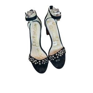 SAM EDELMAN YOSHI black SUEDE PUMPS adjustable ankle STRAP STUDDED edgy Sz 9