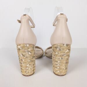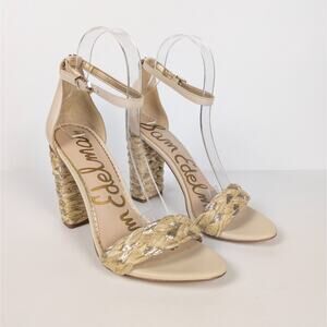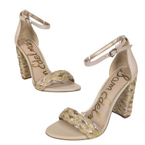 SAM EDELMAN Yoana Raffia Metallic Woven High Heel Sandal Ankle Strap Women's 8.5