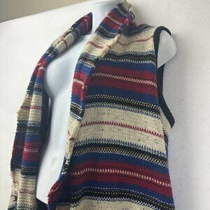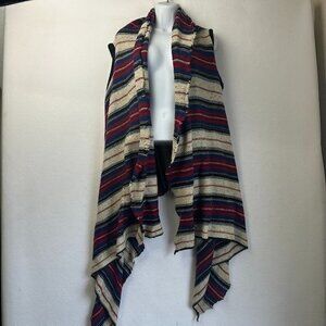 SAM EDELMAN poncho women L red blue striped waterfall Shawl open front Sweater