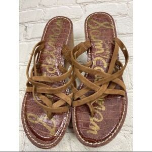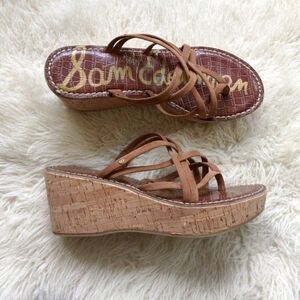 SAM EDELMAN wedge womens brown strappy reana cork wedge sandals 7.5