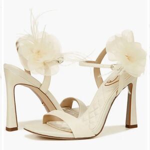 SAM EDELMAN 8.5Leana Ankle Strap Sandal Feathered Floral square toe Slip on Heel
