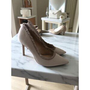 SAM EDLEMAN Lavender Gray Fringe Fabric Trim Heels Size 9.5