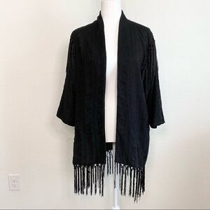 SAM Edelman Black Open Front Embroidered Tassel Western Oversized Long Kimono S