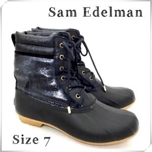 Sam Edelman Caldwell Winter Lace up Duck Boot in Metallic Black