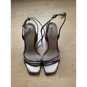 SAM Edelman "Kia" pewter metallic block heel NEW ankle strap flaw on heel