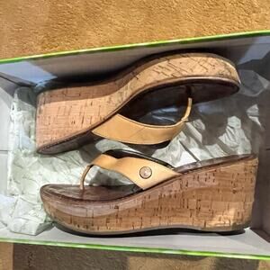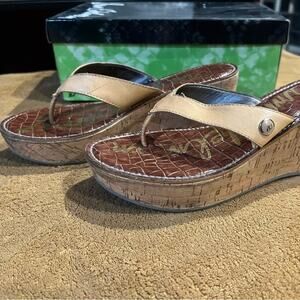SAM Edelman Romy Cork and Leather Wedge/Platform Sandals size 7.5