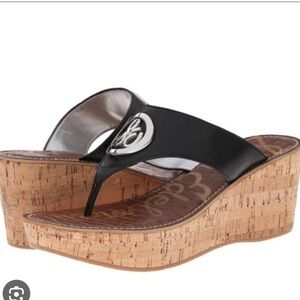 SAM Edelman Ruth Black Cork Wedge Sandals size 9.5M