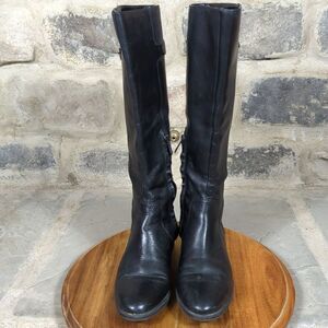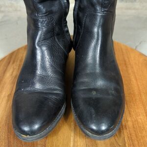 Understated ankle boot with straight cuff and adjustable buckle at side