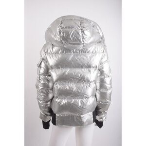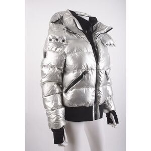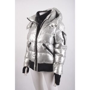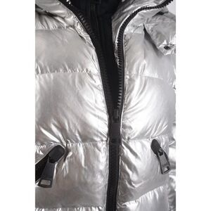 SAM New York Womans Bungalow Down Puffer Jacket Coat Size L Silver Hooded NWT