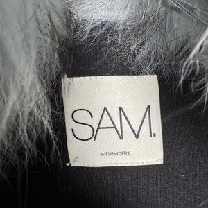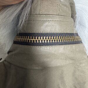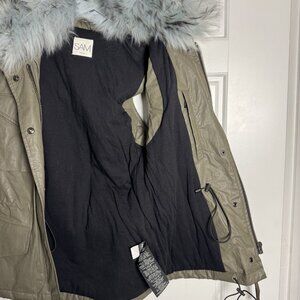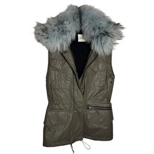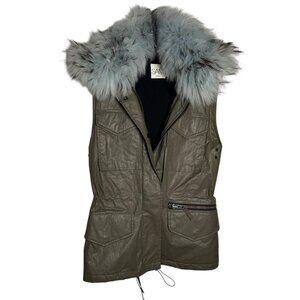 SAM. New York Womens Raccoon Fur Trim military Vest Jacket army green Size XS