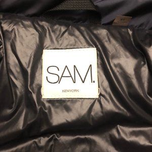 SAM Quilted Down Puffer Dark Blue Coat Zip Closure Excellent Condition Size L