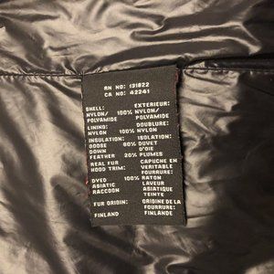 SAM high-quality quilted puffer coat is both fashionable and practical and will keep you warm and cozy on even the coldest days. Dark blue color, stand up puffy collar, front zipper closure, long sleeves with thumbhole cuffs and signature logo patch on the left sleeve. Two flap snap closure side pockets, two zip side pockets, one chest zip pocket and one interior zip pocket, black lining. Goose down 80% and feather 20% insulation, fully lining. Hood is not included. In excellent condition, worn 3 times. Bust 40 Inch, Length 30 Inch in the back. Labeled Size XL fits Size L.