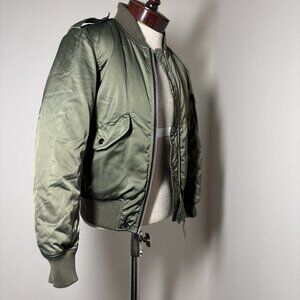SAM Women's XS-S Bomber Jacket Olive Green Designer Army Khaki Aviator Flying