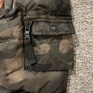 SAM glacier coat, size 4, good condition SAM.'s Glacier Kids Jacket is a fitted boys jacket in a versatile and warm style with a neoprene insert for extra warmth and detachable hood. Features an upper arm media pocket, side zipper pockets and elasticized wrist cuffs and snaps for a secure kids fit. Outer: 100% nylon; Fill: 80% goose down, 20% goose feathers. Dry clean only. Scratch on button on arm pocket with loose thread, as pictured