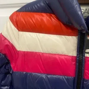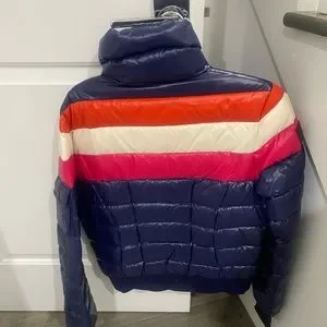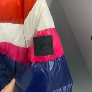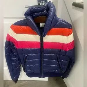 Blue SAM jacket with pink, orange, and white stripe. Has pockets and thumb holes. Exttemely warm & comfortable. Perfect condition.