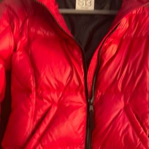 Red puffer coat, size medium (runs small). Barely worn, no defects.