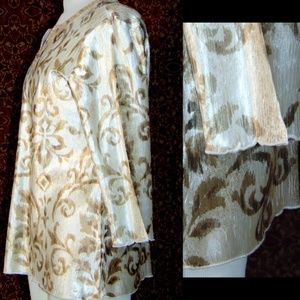 Excellent Condition - Fabric is a wrinkle effect, thin, satin like polyester. Long sleeve. Jeweled neckline. Pullover ONLY.