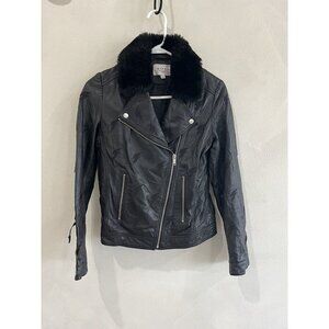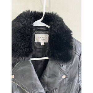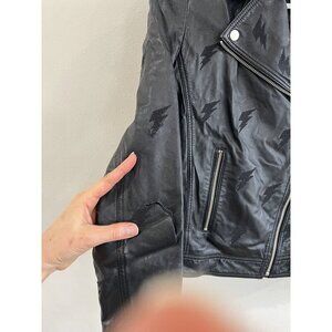 SAMANTHA SIPOS Black Ribbed 100% Leather Biker Cropped Jacket Extra Small AS IS