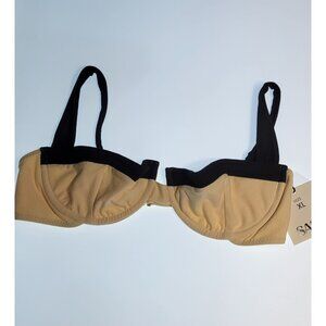 SAME LOS ANGELES BIKINY TOP XLarge WOMENS Beige/Black UNDERWIRE Faux Suede SWIM