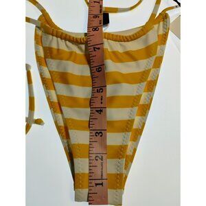 SAME LOS ANGELES Set 2pc Bikiny Swim Top Large Bottom High Weist Stripeed Yellow