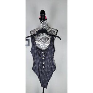 SAME Los Angeles One Piece Swimsuit Womens Size Small Black Polka dot Grace