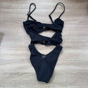 SAME Los Angeles Pierced One Piece Swim Suit Gold Ring Bikini in Black