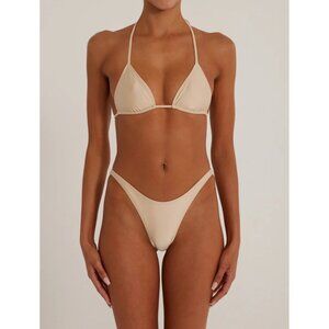 SAME Los Angeles Swim Bikini Set 2Pc Triangke Top High Weist Bottom Beige SZ M