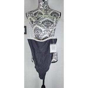 SAME Los Angeles Swim Womens One Piece ColorBlock Polka Dot Black/Cream Xsmall