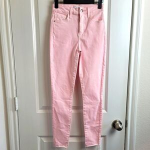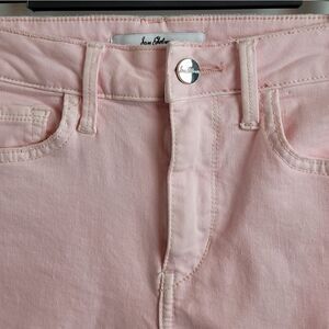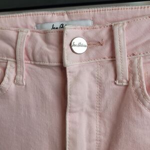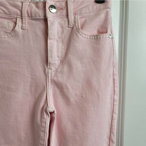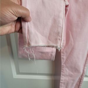 Light pink Sam Edelman 'The stiletto High Rise Skinny Ankle' jeans. Distressed hem at the ankle. There is a blue mark on the pants as pictures it is from rubbing on blue jeans. These have never been worn. The size tag is missing. Please see waist measurement. Size 24