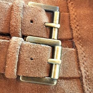 Clean no imperfections no odor non-smoking home practically new sticker on the bottom she's eight that buckles on the side the zippers work fine he's a really classy have no spots no stains