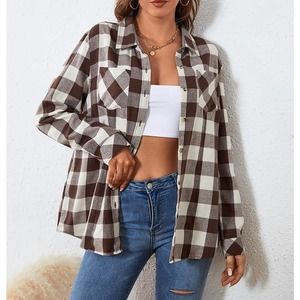 SAMERM Flannel Shirt Oversized Long Sleeve Button Down