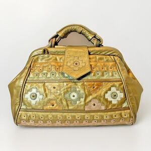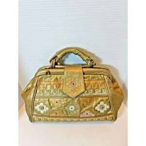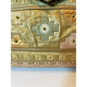 SAMIR VTG Leather Gold Western Boho Patchwork Metallic Cottagecore Handbag Rare