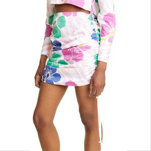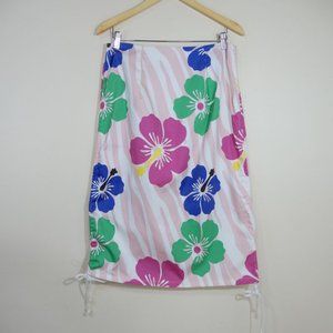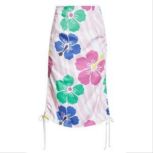 SAMMY B Tory SKIRT Size XL Floral Print Drawstring Sides Cotton Pink NEW $238