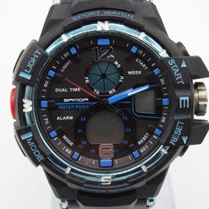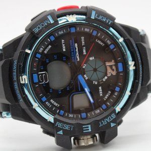 SAMOA Digital Watch Men Black & Blue Sports Outdoor Waterproof Black Rubber Band