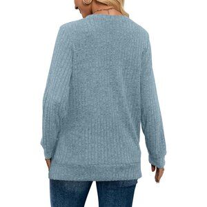 SAMPEEL Womens V Neck Long Sleeve Tops Lightweight Tunic Sweaters Fashion